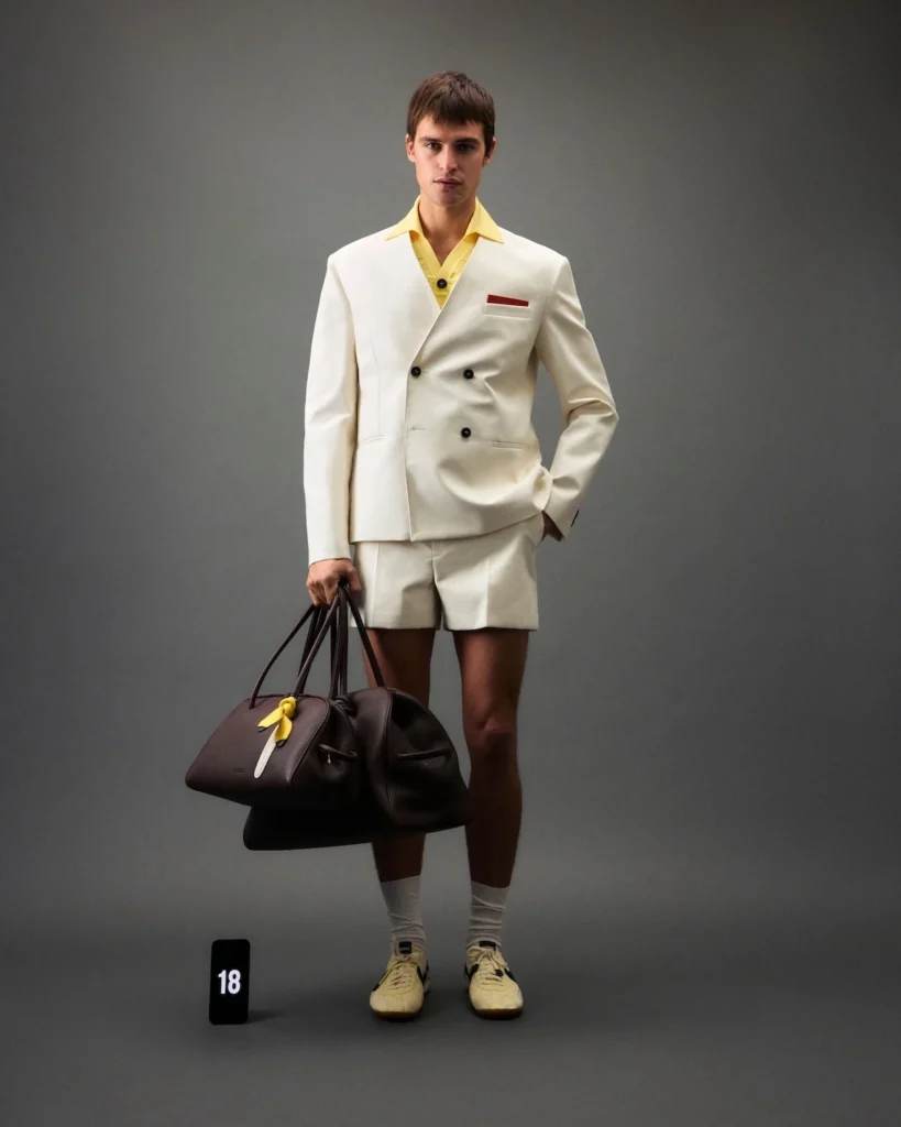 Jacumoon bliver lanceret i tre farver, der hver især har deres eget udtryk. “Off Noir” giver et mørkt og mere råt look, “University Red” står som den mere iøjnefaldende version, mens “Alabaster” er den lyse og minimalistiske udgave. Fælles for alle tre er balancen mellem nogle lidt sporty detaljer og Jacquemus underspillede elegance og detaljer som det her slidte look de har fået.